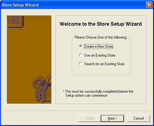 The following screen will appear. Select ‘Create a New Store’ and click <Next>. This will create a new store for the location certificate. The store is a file saved on your computer which is referred to as the 'PSI store', or certificate store.
